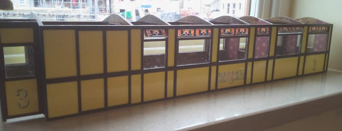 I experimented a couple of times on linking the couplings directly to the centre of the bogies because they are so long and have a tendency to pull the coaches off on the corners which was a big concern of mine. After a couple of test runs and modifications I managed to get them going round the corners nicely.