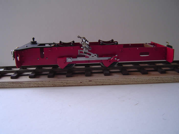 The spring hangers were omitted to ease construction. Later hangers were added by riveting short upright strips inside the frames with a spare rivet at the top to accept imitation springs above each wheel.