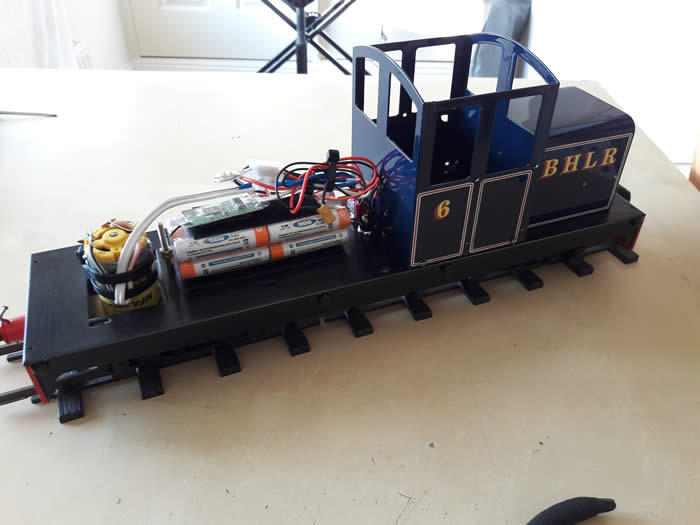 With the body parts painted and back in the workshop, it was finally time to assemble the loco, but not before I fitted the RC equipment. This was supplied by RC Trains and uses the Deltang system. I was really impressed with the small size of the receiver, and I really must find out how to add a sound card and lights. It took about half an hour to wire up the circuit, and while the installation isn’t the neatest job ever, it works very well.