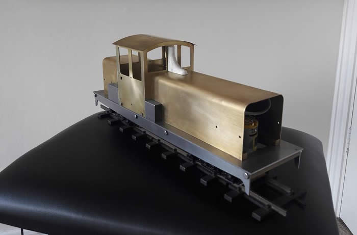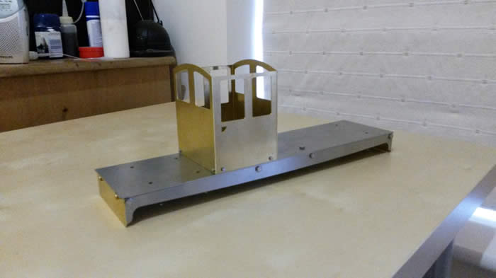 As I now had everything I needed to make a start, I set about designing the chassis using the scaled engineering drawings, and soon realised that I’d need to find a pair of motor bogies to drive the loco. I contacted a firm in India who assured me that they’d be able to make the bogies I wanted at a reasonable price. I foolishly handed over the money, and it will suffice to say that the goods never arrived. In the meantime, I continued to design the loco piece by piece using CAD software. I soon had a pair of laser-cut steel frames which I assembled to brass spacers to form the basic chassis. The footplate was made from 1mm steel and screwed to the frame spacers. I next designed the cab, which was laser cut from 1mm brass. Two ¼” square brass rods were machined and used to hold the four cab panels together, then the assembly was soft soldered. The completed cab locates into two slots in the footplate.
