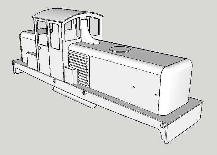At this point, several of the main components were complete, but a lot of smaller parts still needed making. The buffer beams were made from brass, filed to profile, and drilled for IP Engineering centre buffers. The cab roof was made with Andy’s help, and the side boxes were machined from steel bar on the lathe. 3D printing was used to make the exhaust, fuel tanks, louvres and control panel. All of these parts were designed using the CAD software, and in the end I had a more or less complete 3D model which I could use for reference.