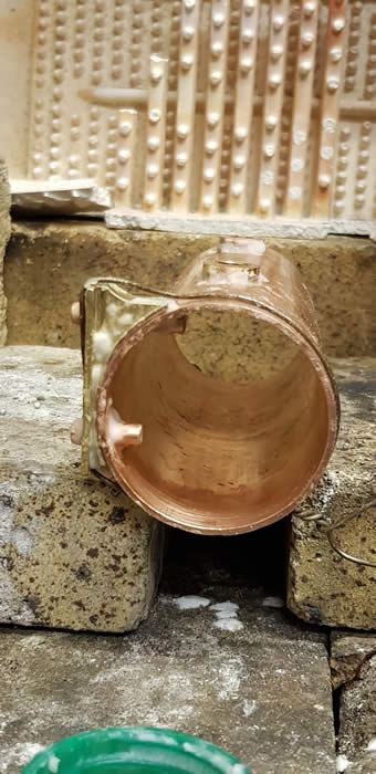 This was necessary because in order to get the solder to run into the joints well the whole thing had to be vertical. A lot of heat needed now!