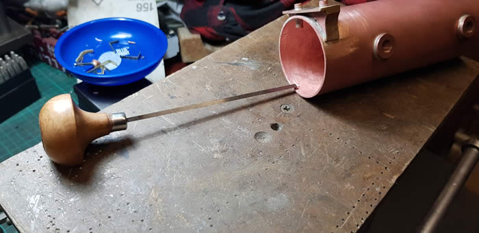 Making the circles of silver solder using the boiler barrel and flue tube as templates