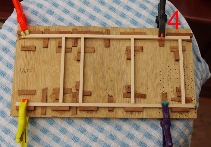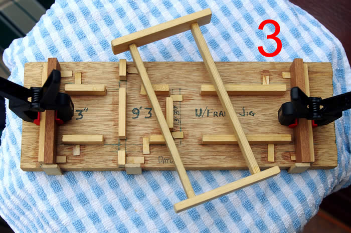 Photo 4 shows the framing jig with wood strips in position.