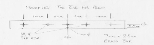 New Tie Bar made from 7mm x 2.5mm brass bar. The 1mm dia hole allows the original Peco spring to be re-fitted if used as a normally operated point