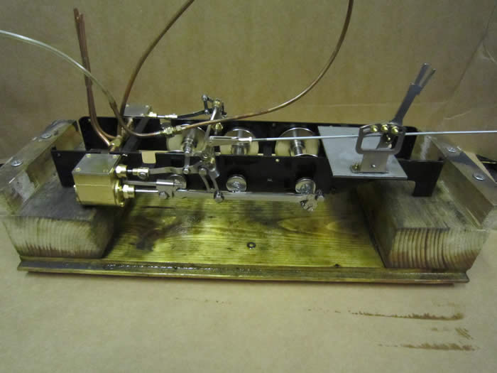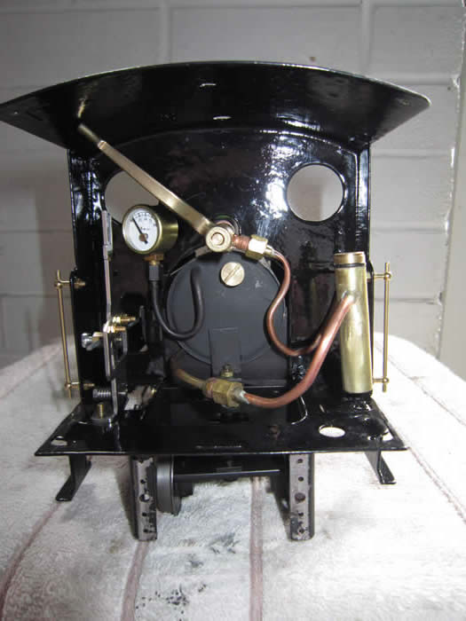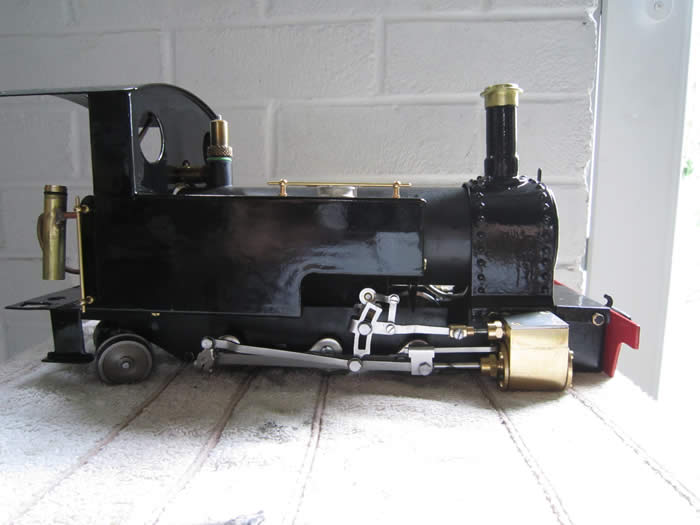 The chassis was stripped down, cleaned and painted and the wheels, cylinders and running gear fitted as per the usual Roundhouse instructions. The assembly was mounted on blocks and tested on compressed air with much lubrication and the valve timing adjusted.
