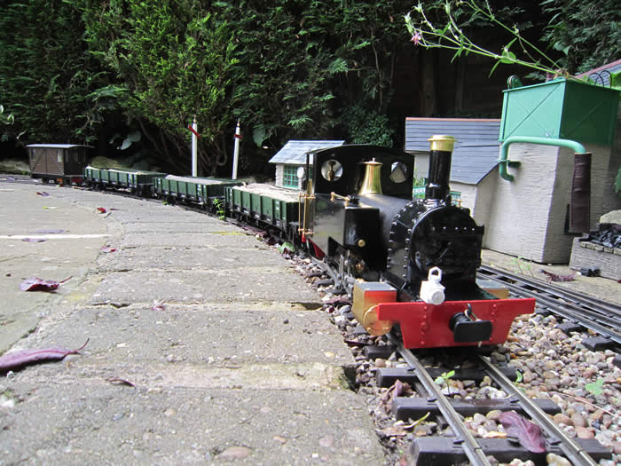 The usual oiling, watering and gassing up regime was followed for a Roundhouse loco which was then placed on my indoor layout. Within 8 minutes of igniting the burner from above the boiler the pressure gauge commenced to rise. At 20 PSI I engaged forwards and opened the throttle, nothing. Impatience had got the better of me so I shut the throttle and waited until the safety valve lifted at 30 PSI. This time the loco set off at an alarming pace throwing condensate out of the funnel for half a lap, obviously too much water in the boiler. Two loaded bogie wagons were coupled up after the 1st. lap and the loco happily pulled this load of about 2Kgs. For the next 15 minutes until the gas ran out, after all it is a small tank. The safety valve was removed from the boiler and reset at 40 PSI.