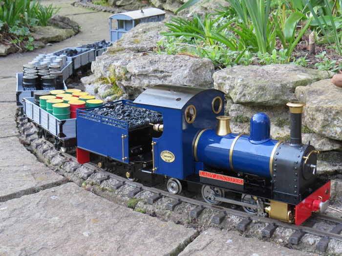 Through my work I became aware of Roundhouse in Doncaster and a Billy with R/C was duly purchased, but what for it to pull? The little light weight wagons bobbed along behind it but were too small. Knowing nothing about the 16mm Association I hit on LGB wagons as a quick fix. GRS were promoting narrow-gauge items using wagons in the Play Train range. These were a less detailed, cheaper range of the LGB 1 metre gauge continental style. They were aimed at children and made in bright primary colours. I purchased three open trucks, brake van, flatbed truck, two tank wagons and a plastic cattle truck body kit.