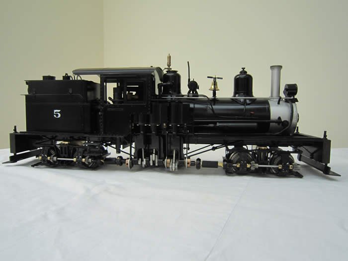 The running test proved that the setting of the geartrains was still somewhat out, and the loco ran fine around the 60” radius circle but failed to negotiate the reverse curves or the tunnel curve. Pressure was maintained at 40 PSI, 15 PSI below the maximum recommended pressure. The speed was ideal though slower in the forward direction as is often the case for Accucraft locos due to the bobbin style reversing valve.