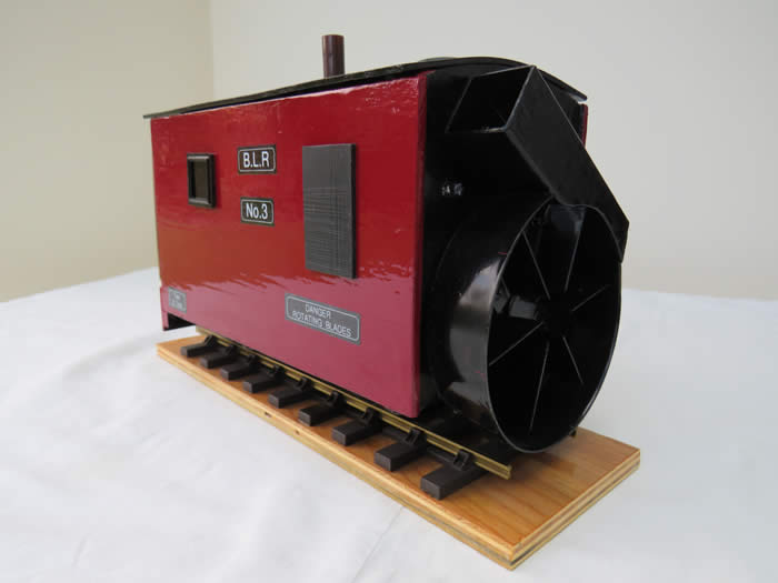 The boxes of bits were still pretty full from abandoned projects and upgrades so a suitable 12v. motor from a scanner was used to drive the fan. Wheels and axle boxes came from the upgrade of some long wheel base Brandbright coaches to bogies which had originally de-railed on reverse curved inclines when in rakes of three or more.