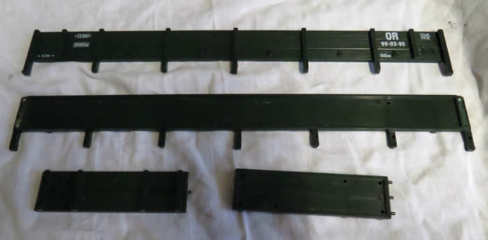 Out came the screwdriver and the frames and hoppers were removed to reveal longitudinal planking and 4 large holes not a good start. I found that 2 of the 6 sets of the green plastic sides and ends which had been manufactured (in China) were plain and recessed, being without the wood grain effect on the inner sides. For 5 years these wagons had been towed around various 45mm layouts full of tree cuttings and I had never noticed the difference, just as well I required only 4 pairs for this project.