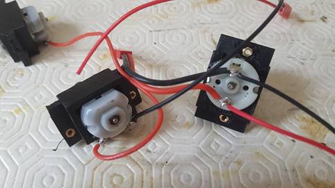 Here are motors in their adjustable blocks. The motors are glued into the blocks.
