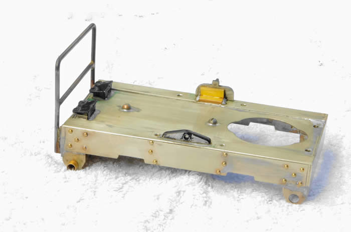 The castings are for the plate frame type of Simplex, so a piece of nickel silver was sheared to form the footplate. Added to this were overlays to give the lip to the footplate edge, more pieces were sheared to produce the side plates and buffer beams. Albion metals angle and box sections were used to provide stiffness at the corners and joints. The lot was soldered using high temperature solder which would allow lower temperature solder to be used to add detail. De-railer brackets and tube were added as were rivet details. A large handrail I’d made for the old model but not fitted was soldered to the front buffer beam and rivets added for strength. The sandbox, gearbox and starter handle bracket casting were added next and, being white metal, needed care. I heated the location of the footboard and tinned with Carrs 70-degree solder. Whilst the solder was still fluid I placed the prepared casting into the solder pool. The heat in the surrounding nickel silver kept the solder fluid to ensure adhesion and avoid directly heating the white metal.