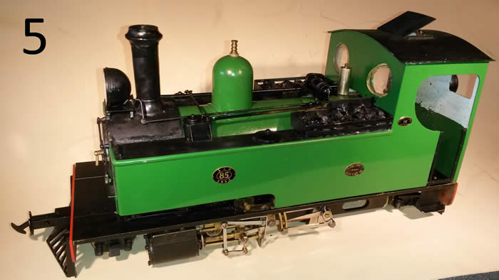 Cab door opening – The cut out in the side was the wrong profile so this was filed to a more prototypical shape with the door opening extended to the bottom of the side and new handrails made. The D section which extended across the cab side was cut back to the tank top. Sun roof - All my photos of the loco show the ‘sun roof’ in the cab open so I decided that as this was a feature that needed to be modelled. The roof can be left propped up or dropped down. Cab windows - Swift Sixteen rotating cab windows fitted the existing cut outs but I filed down the inner sections as they were far too thick. Tank tops – The existing coal bunkers & tank fillers were replaced as I felt the existing ones were not close enough to scale. I also made sand boxes and their control linkage. Tank fronts – the profile of the tank front next to the smokebox was altered to make it more closely resemble the original, hand grabs were put on the tank tops and a step on the left hand tank front. Smokebox – The smokebox door was too large so this was turned down and new hinges made. The smokebox handrail was relocated closer to the reduced door and the old holes filled. Lights – these were Roundhouse DHR ones turned down with brackets made from brass sheet. The conduit to the front lamp was also modelled. Cowcatchers – made up from brass section. Cab steps – from brass sheet Slide bars – these fell apart from there fixings and as they were made of round bar and rather shiny I decided to replace them with a rectangular section. Bogies – the width between the dummy sideframes was reduced and sloping axleboxes added (butchered from Accucraft L & B wagon boxes). Livery & plates – Whilst I like black, I have too many black locos already and also it would mean modelling the extended tanks which I don’t like. On the WLLR it has also run in green, red & blue. I choose to repaint the loco in green using Halfords spray enamel. This livery on the WLLR was a representation of the pre-war SLR livery. The plates were supplied by Narrow Planet.There are still a few details I’m considering adding but I’m now happy that the loco looks the part and I’ll find it interesting to compare it to the Accucraft model when it appears.